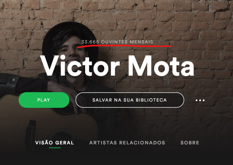 Hoje Victor está com mais de 33.000 ouvintes mensais no Spotify e uma base de fãs crescendo de forma saudável e constante.